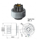 NÚMERO DE DIENTES 9 DIÁMETRO EXTERIOR DEL PIÑÓN 29 6 LARGO TOTAL 43 5 DIÁMETRO DEL CASQUILLO 12 DIÁMETRO EXTERIOR 45 5 SENTIDO DE ROTACIÓN (CW) Horário NÚMERO DE ESTRÍAS 8